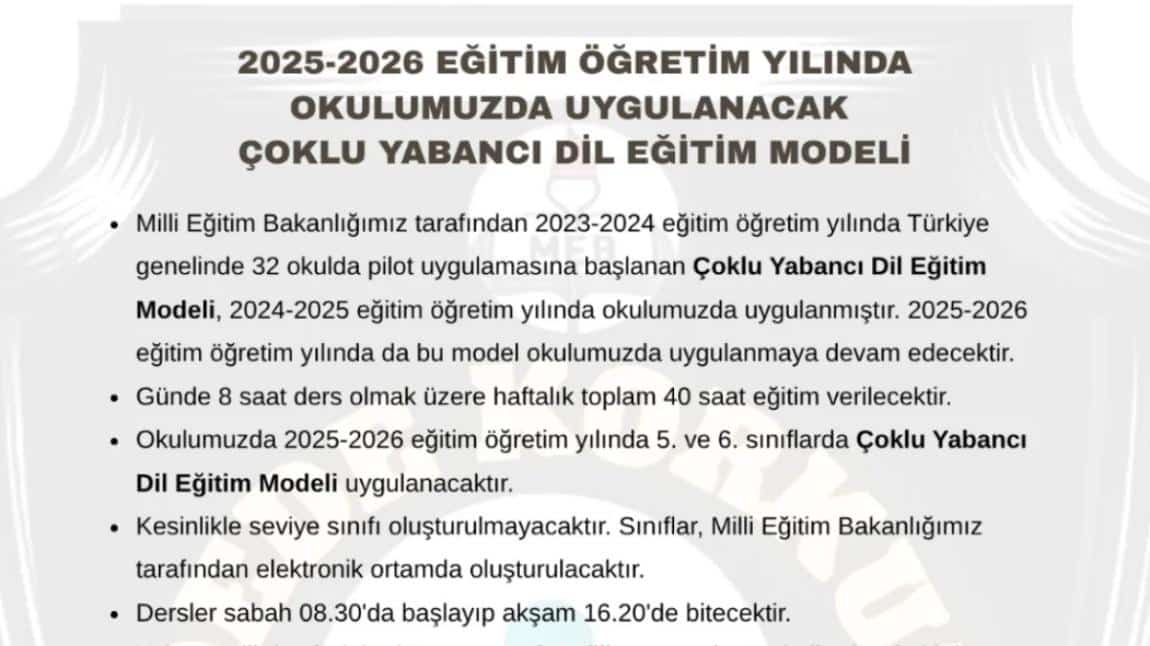 OKULUMUZDA UYGULANACAK OLAN ÇOKLU YABANCI DİL EĞİTİM MODELİ