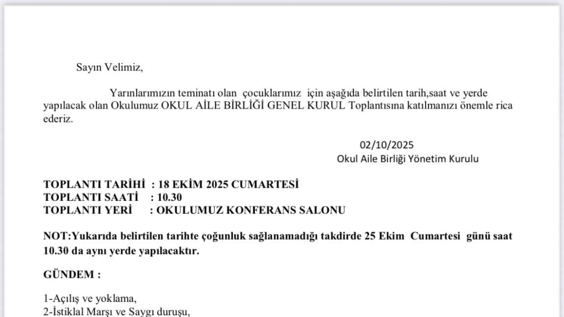 OKUL AİLE BİRLİĞİ GENEL KURUL TOPLANTISI